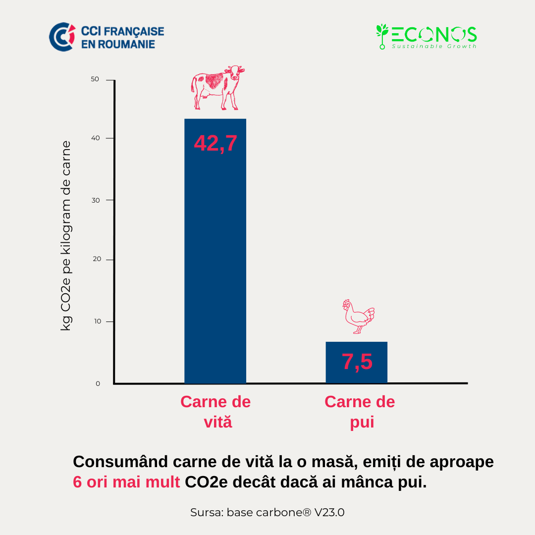 Carnea de vită are, într-adevăr, emisii mari de CO2 datorită producției intensive de bovine, defrișării pentru pășunat (care are elibereaza CO2-ul absorbit), transportului și procesării (refrigerarea și ambalarea) cărnii. Prin adoptarea unor măsuri sustenabile, cum ar fi reducerea consumului de carne, trecerea la agricultura durabilă și protejarea pădurilor, putem reduce semificativ impactul acestei industrii asupra mediului, care afectează inclusiv amprenta de CO2 la Gala CCIFER 2023.