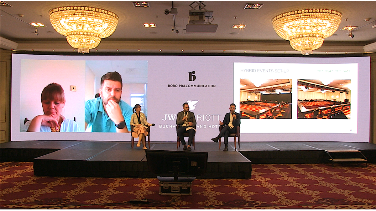 JW Marriott Bucharest Grand Hotel a creat un studio complet echipat cu echipamente de video conferinta de ultima generatie, facand posibile evenimentele hibrid in aceasta perioada, punand la dispozitia organizatorilor de evenimente solutii tehnice optime si asistenta de specialitate dedicata, inainte si dupa eveniment.