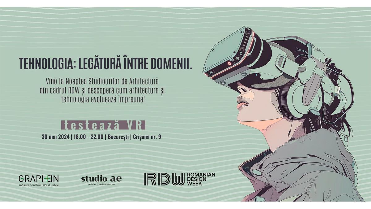 Studio ae – architecture & evolution și Graphein organizează pe 30 mai 2024, la sediul Studio ae din Strada Crișana 9, București, evenimentul Tehnologia: legătură între domeni.