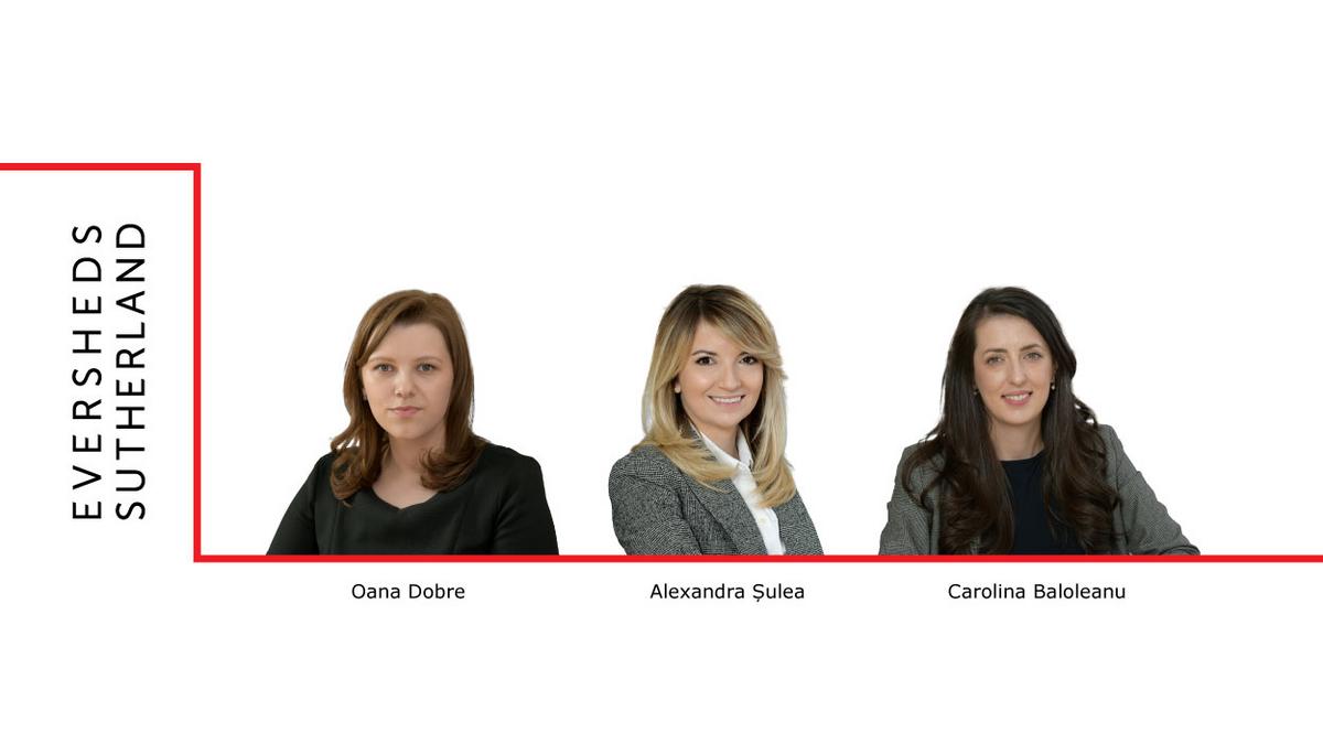 Eversheds Sutherland Romania continuă dezvoltarea ariilor de practică Banking & Finance, Telecom, Corporate și Employment și anunță promovarea a trei avocați seniori ca parteneri în cadrul biroului din București: Alexandra Șulea, Carolina Baloleanu și Oana Dobre.
