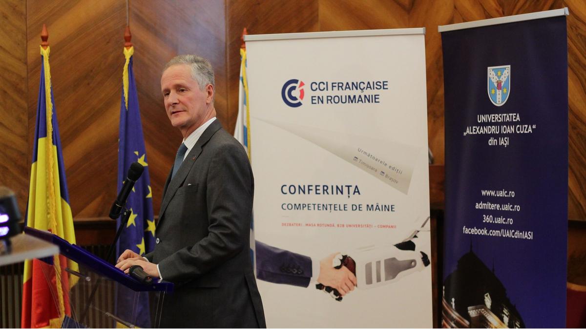 « Este o nevoie reală de a crea sinergii între universități și companii, iar CCIFER își asumă acest rol de facilitator și a răspunde mai bine nevoilor de competențe ale companiilor » a declarat François Coste, Președinte CCIFER în deschiderea conferinței « Competențele de mâine » de la Universitatea Alexandru Ioan Cuza. Impreună cu partenerii săi, CCIFER dorește să sustină eforturile de recrutare ale companiilor și să contribuie la creșterea angajării tinerilor prin ajustarea programelor academice la nevoile companiilor.
