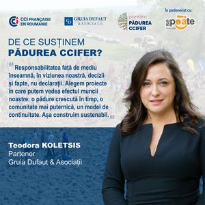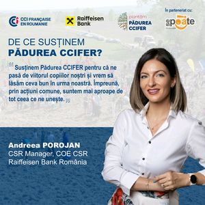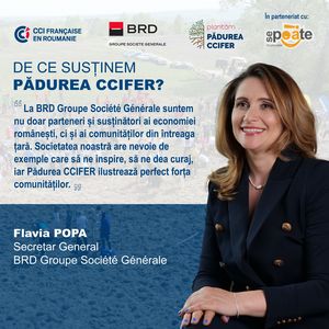 La BRD Groupe Société Générale suntem nu doar parteneri și susținători ai economiei românești, ci și ai comunităților din întreaga țară. Suntem alături de Pădurea CCIFER pentru că suntem conștienți că numai împreună putem avea un impact real. Mai mult decât atât, copacii pe care îi plantăm împreună sunt în egală măsură semnele speranței și ale puterii noastre de a schimba lucrurile în bine. Societatea noastră are nevoie de exemple care să ne inspire, să ne dea curaj, iar Pădurea CCIFER ilustrează perfect forța comunităților.