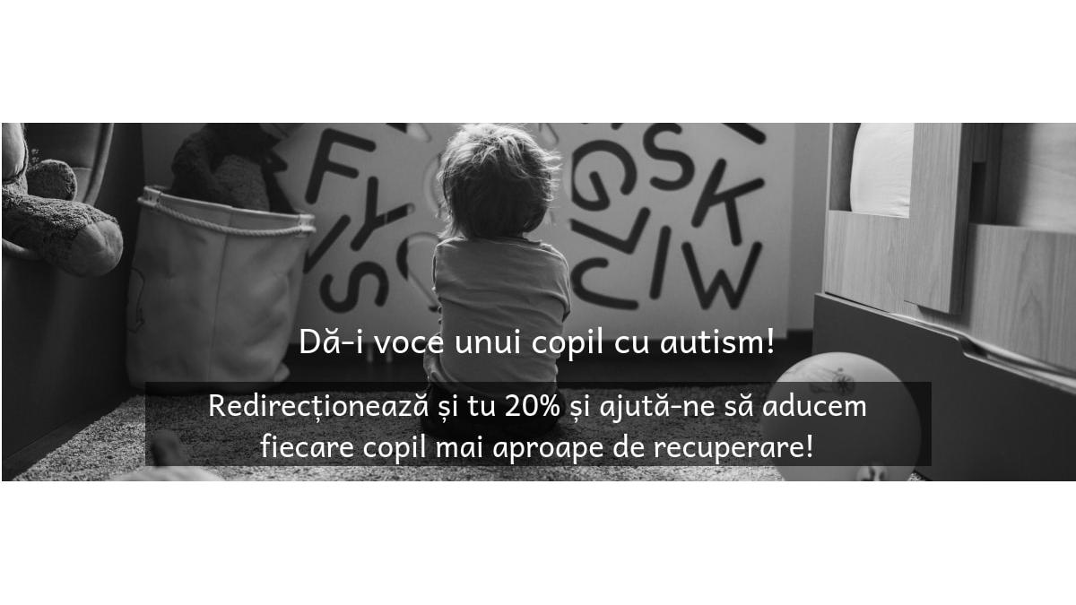 Direcționează către Autism Voice 20% din impozitul pe profit sau venit, fără niciun alt cost pentru companie. Poți controla astfel o parte din taxele care se pierd de obicei în bugetul de stat si poti ajuta la realizarea celor doua proiecte nationale pe care asociatia noastra le are in plan! Terapia copiilor cu autism nu este sprijinită de stat, însă le putem oferi împreună șansa de a avea o viață normală!