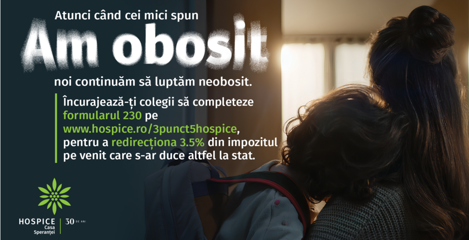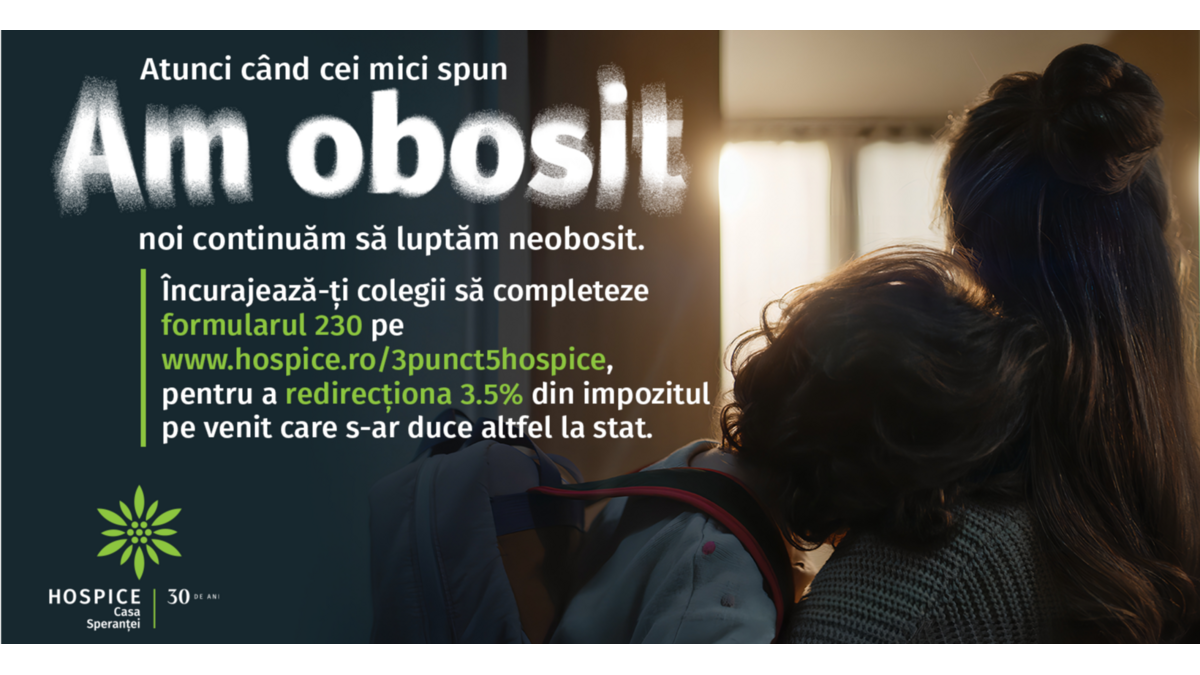 Devino constructor de speranță! Completează formularul 230 pe https://www.hospice.ro/3punct5hospice/ și trimite-l pe mail la hospice(@)hospice.ro sau depune-l în format fizic la punctul special amenajat din interiorul companiei.