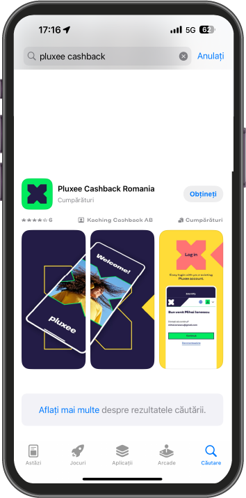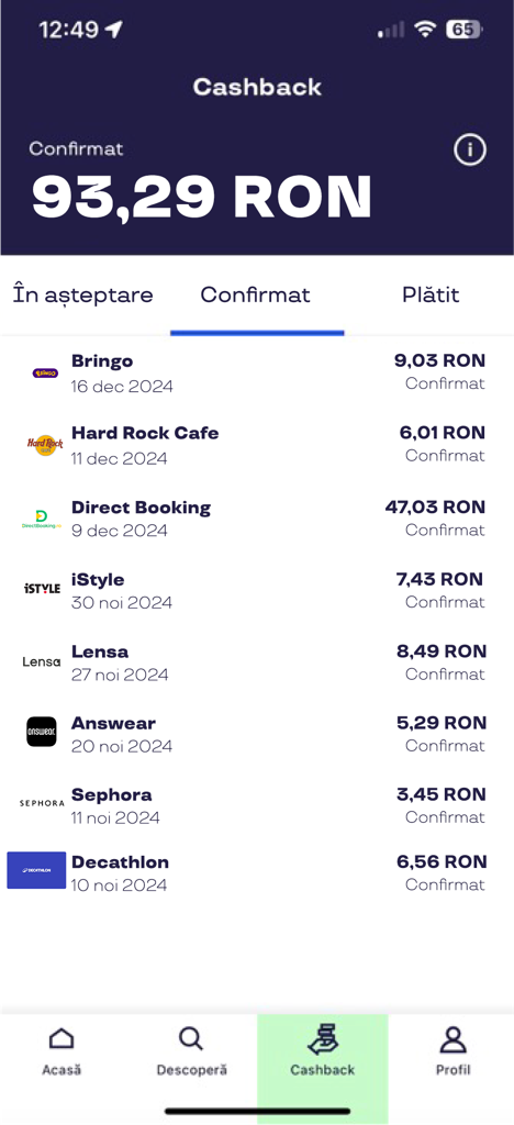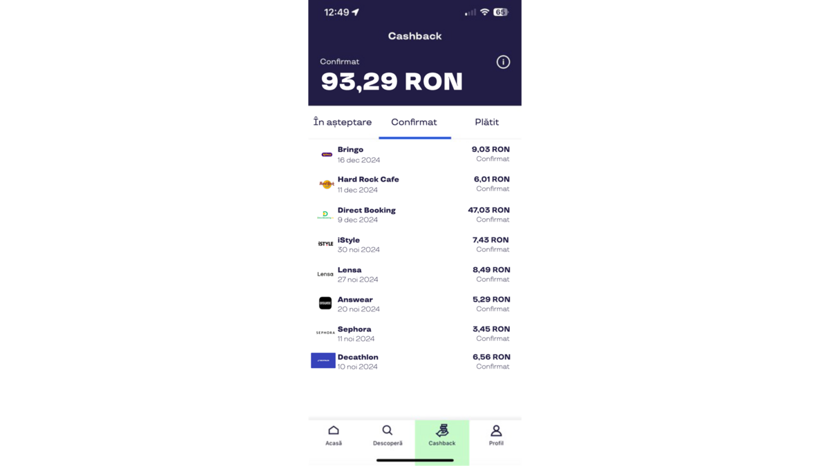 - Aplicația include peste 750 de oferte din domenii variate, disponibile atât online, cât și offline, cu două opțiuni de cashback: Fast Cashback și e-Cashback.