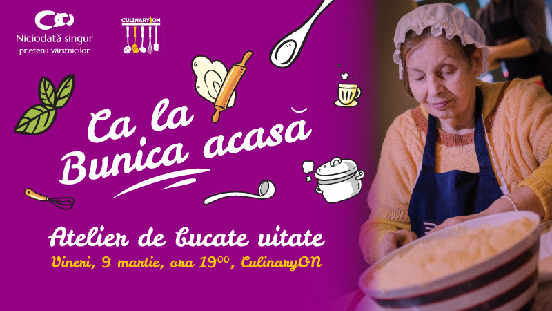 Te așteptăm la Bunica acasă, acolo unde mereu te simți bine și guști cele mai delicioase feluri de mâncare. Vineri, pe 9 martie, de la ora 19.00, la CulinaryON (Șoseaua Pipera 48, București) ai ocazia să te distrezi, să „furi” meseria gătitului ca odinioară de la cele mai talentate Bunici și să devii expertul familiei în preparat mucenici tradiționali. Bunicile pricepute și îndemânatice, alături de Chef Mihai Chelaru (Head Chef CulinaryON) ți-au pregătit șorțul și te așteaptă să îți dezvăluie secretele bucatelor uitate, într-un cooking class plin de surprize și distracție, care îți va aminti de copilărie.