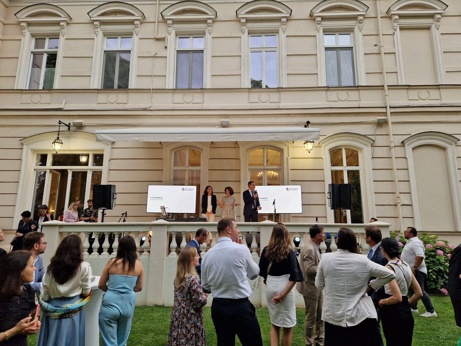 Atmosfera încântătoare de la Reședința Ambassade de France en Roumanie a fost ocazia perfectă ca membrii comunității de business francofone să creeze noi contacte și colaborări, în timp ce au putut admira noile modele de mașini electrice Renault!