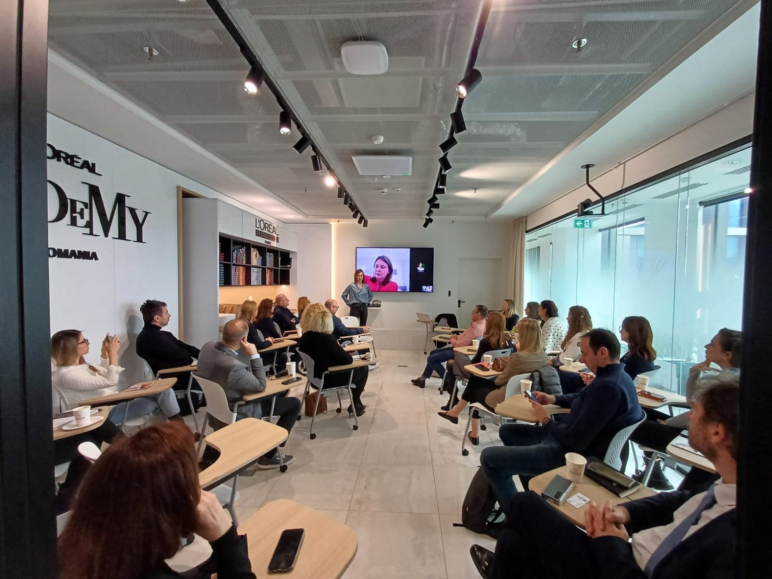 Participanții au vizitat noul sediu, prietenos cu mediul, conceput conform unor standarde exigente de sustenabilitate. Simona Fîrtat, Corporate Affairs & Engagement Director la L’Oréal a povestit despre angajamentul puternic al companiei față de responsabilitatea corporativă și protecția mediului. L’Oréal este lider pe piața de beauty din România și are în portofoliu 20 de branduri.