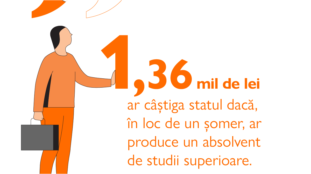 Potrivit studiului „Costul educației: investiții, randament, impact”, fiecare leu (aproximativ 0,2 euro) investit în educație returnează aproximativ opt lei (2 euro) în taxe pentru fiecare persoană care finalizează o diplomă postuniversitară, pentru un randament de 700%. Contribuția totală la impozitul pe viață a unui deținător de studii postuniversitare este de aproximativ 1,27 milioane de lei (254.000 de euro).