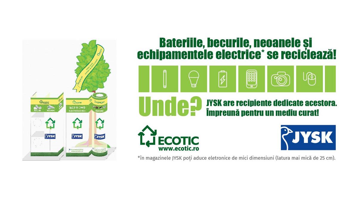 ECOTIC împreună cu JYSK demarează o campanie de conștientizare a publicului larg în ceea ce privește colectarea separată în vederea reciclării a deșeurilor de baterii, becuri, neoane și electronice mici.