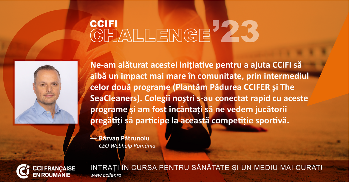 Competiția sportivă #CCIFIChallenge este o inițiativă a CCI France International la scară globală, care promovează un stil de viață sănătos și coeziunea în echipă, în timp ce susține două cauze de mediu: The SeaCleaners în misiunea lor de a proteja oceanele împotriva poluării cu plastic și proiectul nostru local, #PlantămPădureaCCIFER.