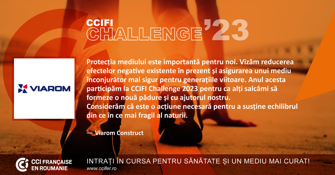 Protecția mediului este importantă pentru noi. Vizăm reducerea efectelor negative existente în prezent și asigurarea unui mediu înconjurător mai sigur pentru generațiile viitoare. Suntem mândri că în 2022, 1.500 de salcâmi au fost plantați în Pădurea CCIFER, în cadrul unei acțiuni susținute și de compania noastră, Viarom Construct, cu participarea a 200 de voluntari, reprezentanți din companii membre a comunității CCIFER. Anul acesta participăm la CCIFI Challenge 2023 pentru ca alți salcâmi să formeze o nouă pădure și cu ajutorul nostru. Considerăm că este o acțiune necesară pentru a susține echilibrul din ce în ce mai fragil al naturii.