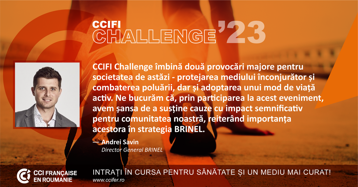 CCIFI Challenge îmbină două provocări majore pentru societatea de astăzi - protejarea mediului înconjurător și combaterea poluării, dar și adoptarea unui mod de viață activ. Ne bucurăm că, prin participarea la acest eveniment, avem șansa de a susține cauze cu impact semnificativ pentru comunitatea noastră, reiterând importanța acestora în strategia BRINEL.