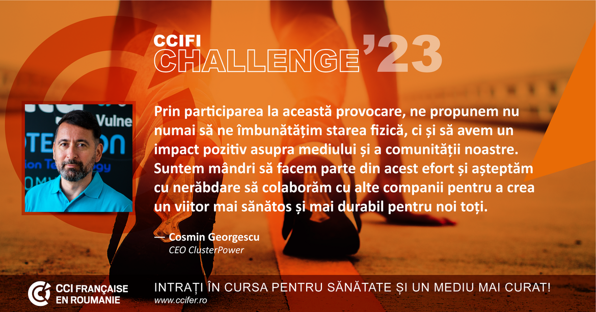 Întreaga echipă ClusterPower este încântată să participe la CCIFI Challenge, care face parte din angajamentul de lungă durată al companiei pentru soluții durabile. La ClusterPower, înțelegem importanța promovării unui stil de viață sănătos, sprijinind în același timp cauze cruciale, cum ar fi protejarea oceanelor de poluarea cu plastic și contribuția la dezvoltarea durabilă prin împădurire. Prin participarea la această provocare, ne propunem nu numai să ne îmbunătățim starea fizică, ci și să avem un impact pozitiv asupra mediului și a comunității noastre. Suntem mândri să facem parte din acest efort și așteptăm cu nerăbdare să colaborăm cu alte companii pentru a crea un viitor mai sănătos și mai durabil pentru noi toți.