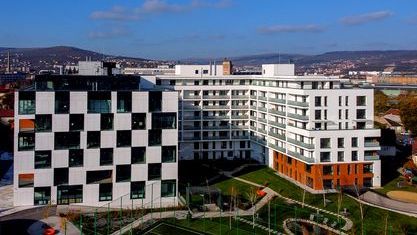 In the 30.000 square feet, there are hosted offices, apartments, one bistro, a sports field, a gym, a business incubator, a park, a kindergarten, a school that teaches after an international curriculum, and the campus will complete the offer with available services with a co-working space and a barber shop.