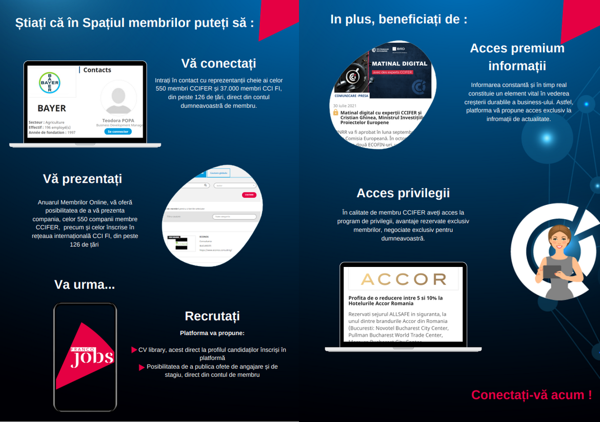 • Participarea cu tarife preferentiale la cursurile propuse de Centrul de Formare CCIFER