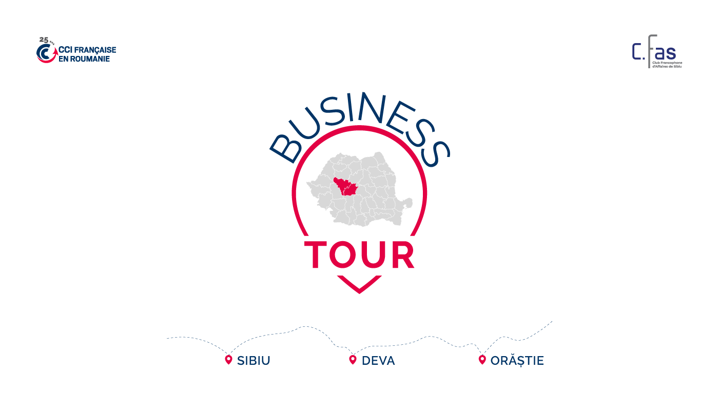 Taxa de participare la toate evenimentele « Business Tour – Travailler avec » care vor avea loc în perioada 14-16 iunie 2022, la Sibiu, Deva și Orăștie este de 300 EUR+TVA/persoană.