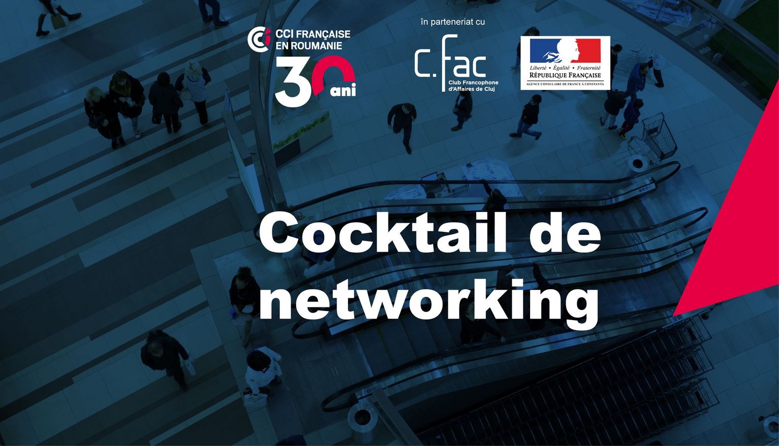 CCIFER, CFAC și Agenția Consulară a Franței la Cluj, în parteneriat cu Alstom, au plăcerea de a vă invita la un Cocktail de networking, organizat în prezența reprezentanților comunității economice franco-române, mediului academic și autorităților publice locale.
