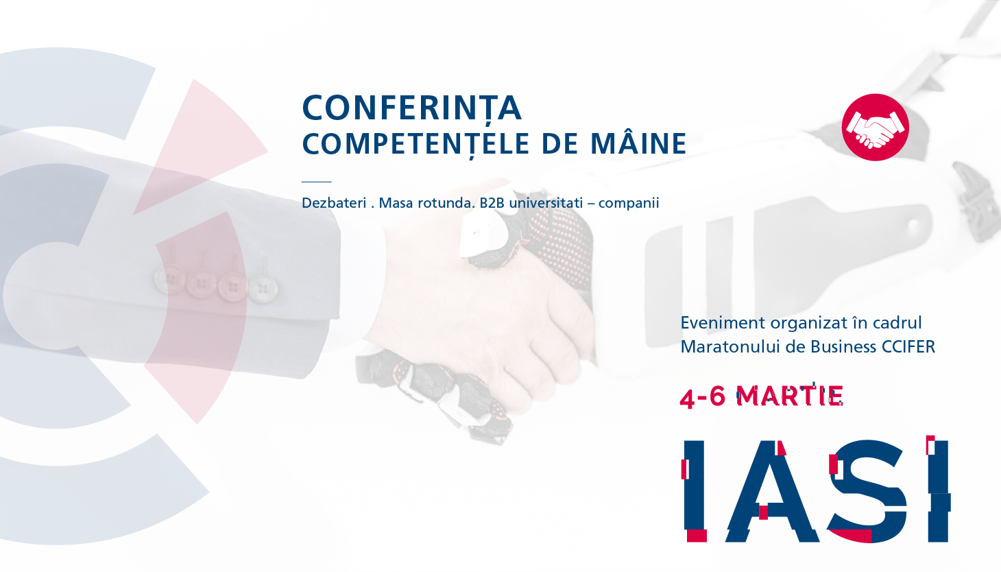 Eveniment organizat in cadrul Maratonului de business CCIFER la Iasi. Va rugam sa gasiti aici toate evenimentele care vor avea loc in perioada 4-6 martie.