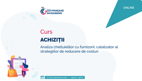 Centrul de formare CCIFER are plăcerea de a vă invita la un curs interactiv online, de două zile dedicat Analizei cheltuielilor cu furnizorii, catalizator al strategiilor de reducere de costuri.