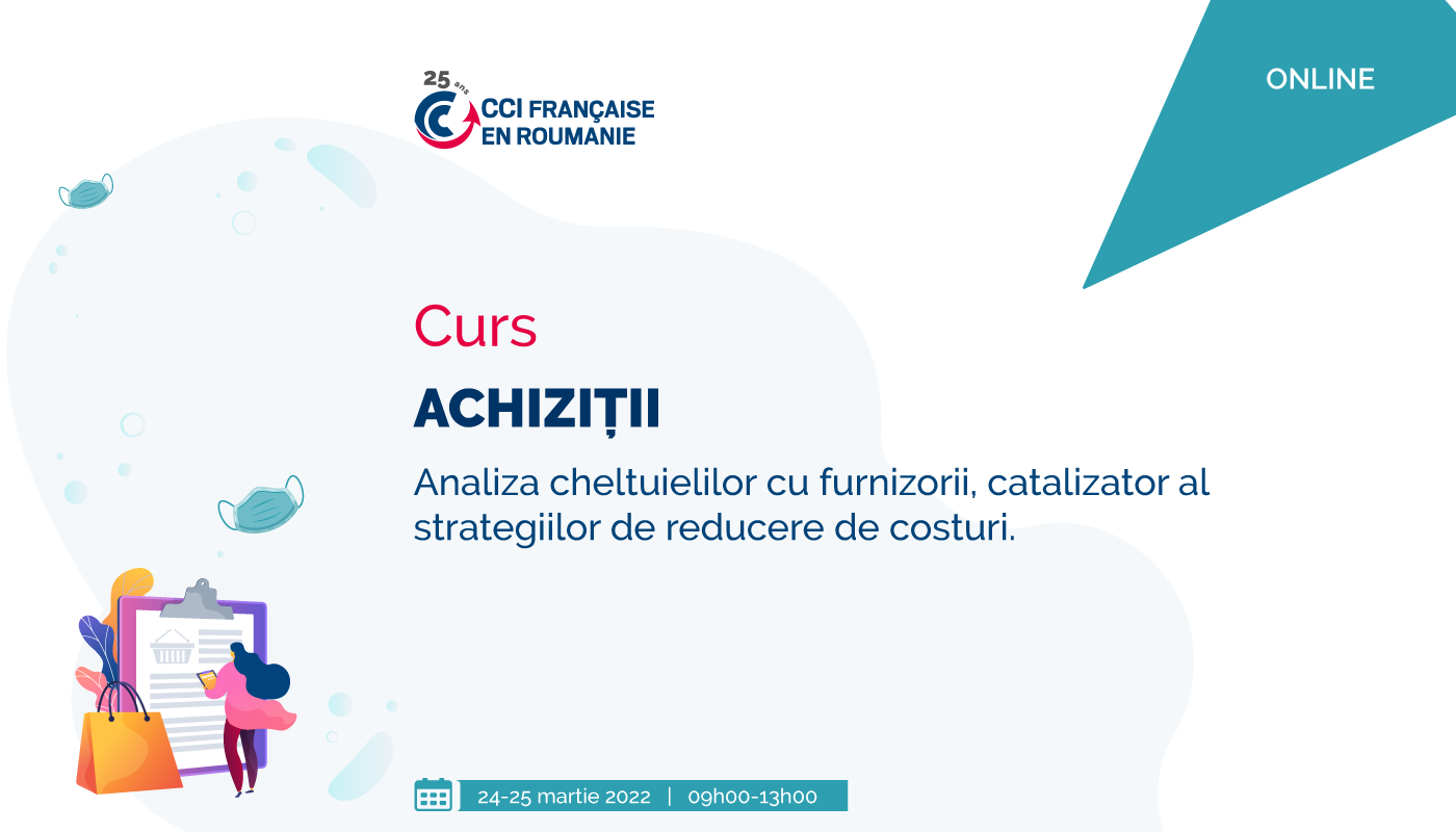 Centrul de formare CCIFER are plăcerea de a vă invita la un curs interactiv online, de două zile dedicat Analizei cheltuielilor cu furnizorii, catalizator al strategiilor de reducere de costuri. Necesitatea controlului și reducerii costurilor este esențială pentru atingerea obiectivelor de profitabilitate ale companiilor, mai ales într-un context economic în care cererea, în exces față de ofertă, este satisfacută la costuri și în termene de livrare semnificativ majorate, ce pun sub semnul incertitudinii capacitatea de realizare a planurilor de producție și a țintelor de vânzări.