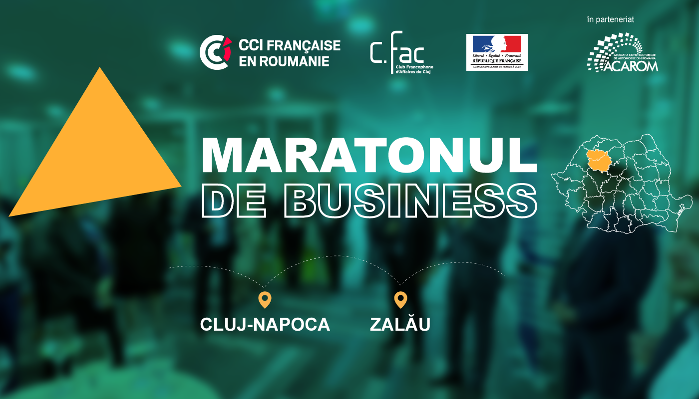 CCIFER, Clubul Francofon de Afaceri din Cluj (CFAC) și Agenția Consulară a Franței la Cluj, în parteneriat cu ACAROM au plăcerea de a vă invita la Maratonul de Business care va avea loc în perioada 10-11 octombrie 2023, la Cluj-Napoca si Zalau.