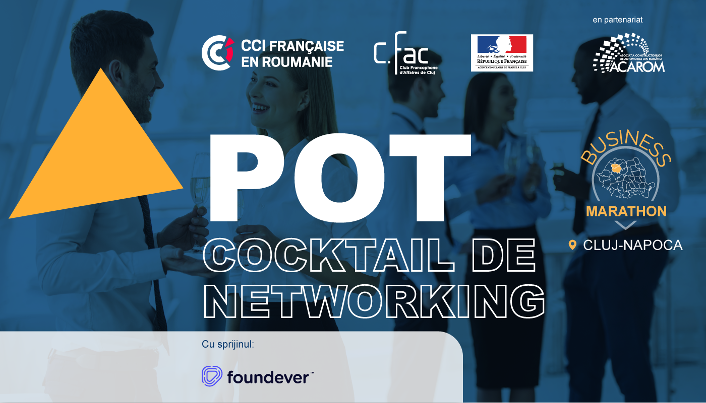 CCIFER, Clubul Francofon de Afaceri din Cluj și Agenția Consulară a Franței la Cluj, în parteneriat cu Foundever, au plăcerea de a va invita la un Cocktail de networking.
