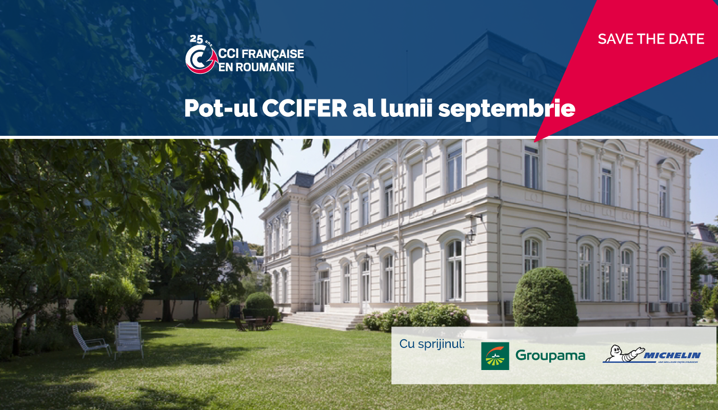 Devenit deja o traditie, Pot-ul CCIFER al lunii septembrie, organizat in parteneriat cu Groupama Asigurari si Michelin va avea loc la Resedinta Ambasadei Frantei la Bucuresti.