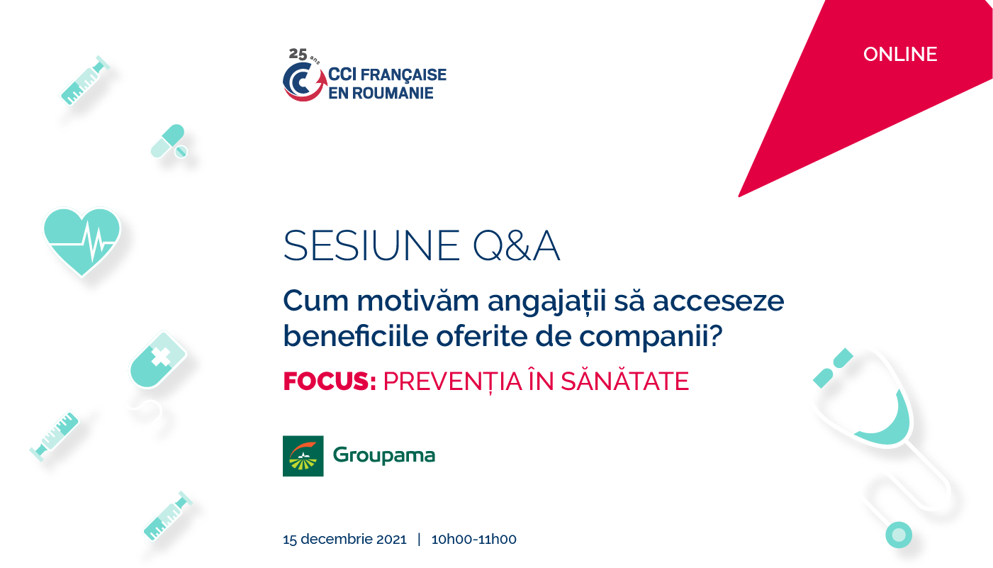 CCIFER are plăcerea de vă invita să vă alăturați unei sesiuni de întrebări-răspunsuri despre provocările departamentelor de resurse umane în ceea ce privește retenția angajaților, cu focus pe beneficiile din zona de sănătate.