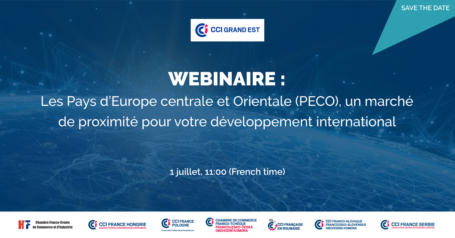 CCI Grand Est și CCI FI din regiunea PECO au plăcerea de a vă invita pe data de 1 iulie 2021, de la ora 11:00 (ora franceză) la webinarul: