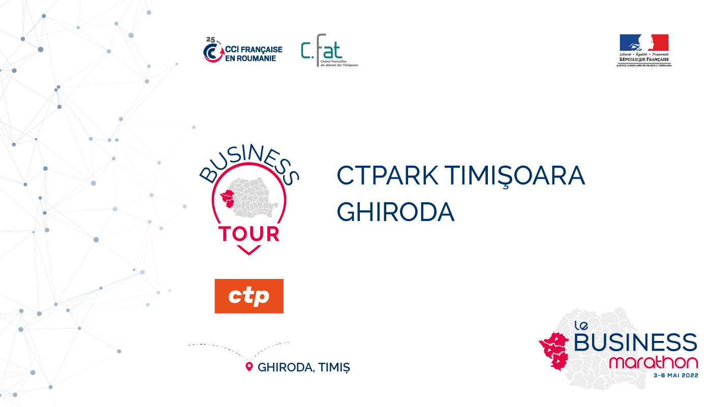 Taxa de participare la toate evenimentele « Business Tour – Travailler avec » care vor avea loc în perioada 4-6 mai 2022, la Timișoara, Reșița și Arad este de 250 EUR+TVA/persoană.