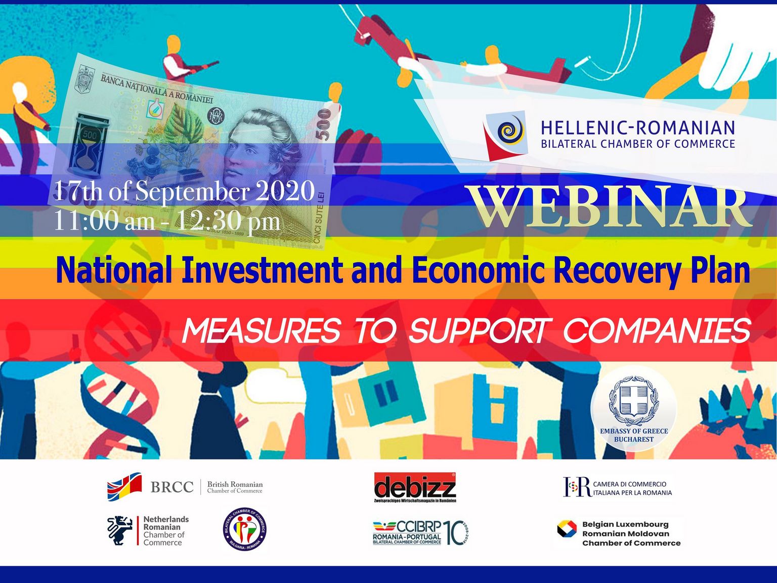 Please join us on September 17th, 11 am to 12.30 pm for a detailed discussion on the short and long term measures the Romanian Government has elaborated within the National Investment and Economic Recovery Plan.